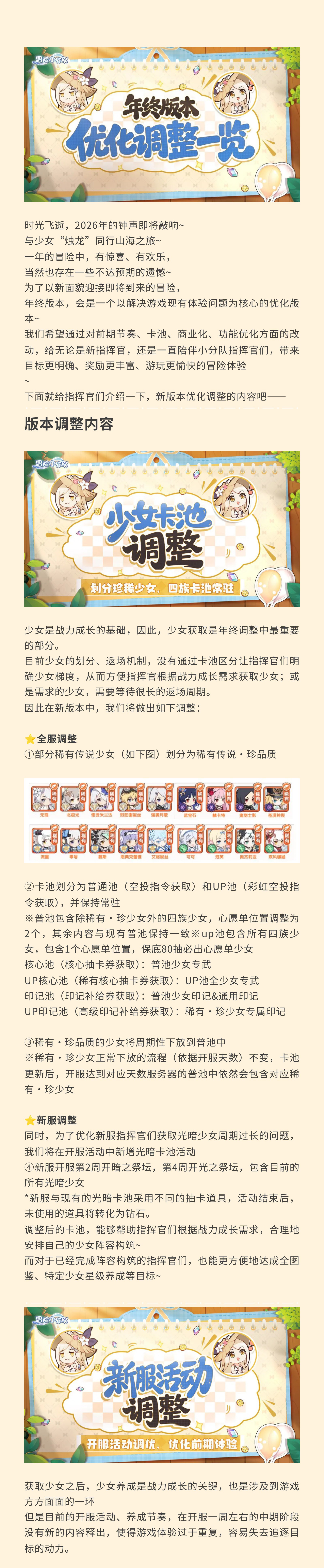 大型活动周期延长我觉得这个挺不错的 有新的玩法活动 不然长草期跟上班一样挺无聊的,烛龙双形态的设定很新颖。非遗联动不用花钱我是没想到的,皮肤模型原画都挺好的,希望技能特效上面能有更好的进步。也祝小分队越来越好!