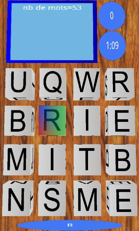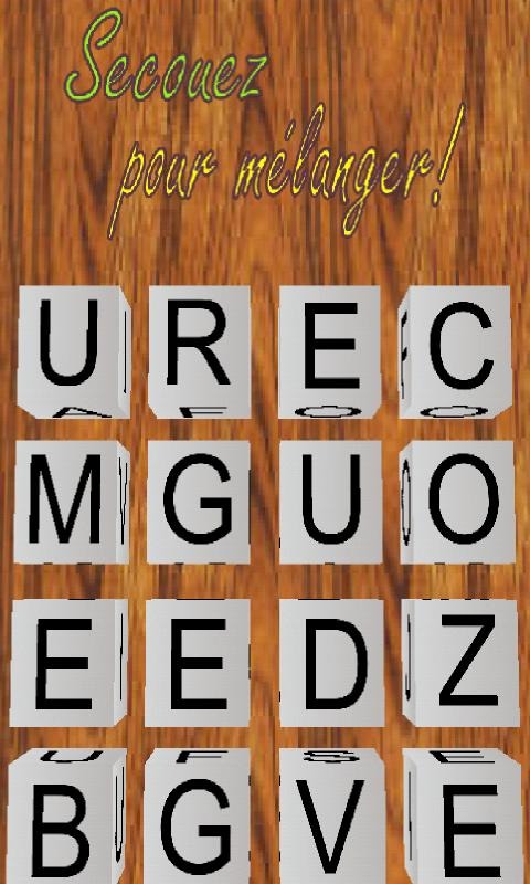 Découvrez deux nouveaux jeux de mots à travers cette application aux effets 3D!Maximots vous captivera de nombreuses heures dans le jeu « Mélimots », variante du grand classique Boggle. Dans ce jeu, vous devrez trouver un maximum de mots de trois à neuf lettres(nom propre exclus, comme au scrabble), dans une grille de 4*4 lettres. Un chronomètre limitera la partie à deux minutes.Le « Coursomots », deuxième jeu de mots du maximots, plaira surtout aux plus jeunes - même ne sachant pas lire. Le principe du coursomots est de trouver dans une grille un maximum de mots proposés par le jeu.A noter que les mots grossiers sont désactivés pour cette version, vous pouvez donc confier ce jeu à vos enfants sans avoir à répondre à d’éventuelles questions embarrassantes!Tags: Jeu de mots, Boggle, Scrabble, Jeu pour tous, Jeu adulte, Jeu enfant, Jeu bébé, Jeu de lettres, 3D, Jeu 3D, Jeu rapide, Jeu Français, Jeu réflexion, Opengl es 1.1., ludique, éducatif.