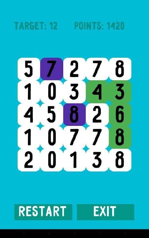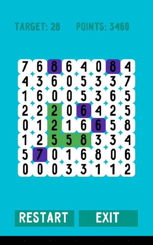 Connecting digits to obtain the desired number. Train your mind. Great game for kids!- Match the numbers in sequence to get the right amount in number.- The first digit will be blocked.- 4 digits in the series of blocked and unblocked and change to others.- The game continues as long as possible to collect the required number.- It is necessary to think through the moves to blocked digits are not too many.A future version will be added new modes: for time, complicated (two-digit), and others.As well as the new design.Do not forget to rate this game!Enjoy the game.