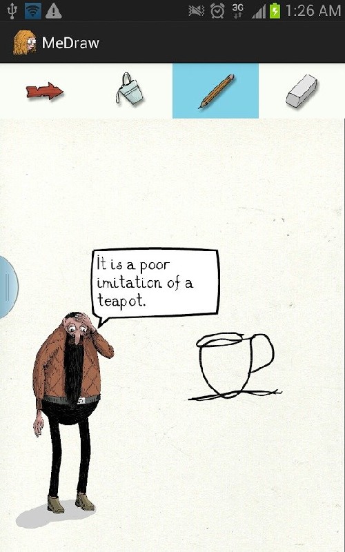 Choose either Marcjanna or a gravedigger. Then just draw! Marcjanna or Gravedigger will tell you whether you succeeded. Or you accidentally drew something else.*** The application is partly inspired by Antoine de Saint-Exupery's novel „The little prince”. As we all know the narrator after his plane crashed found himself in a middle of nowhere, on the desert without a food, gasoline and necessary parts to rebuild his plane. After that he met some strange, lost and sad child. Child asked him to draw a lamb. In times like this a lot of us feel insecure, sad and lost. We are hiding little prince in the bottoms of ours hearts. Little prince had ability to distract the Pilot, made him stop thinking about his uncomfortable situation. Pilot was encouraged by little prince to change the perspective how he perceives the world.Let the story begin.Intece is easy for the users and provides a large amounts of happiness when we play with it. It is also the way to reduce the stress, or to distract player’s blue feeling. In main menu we choose the character. We have two ways to go, we choose either a gravedigger or a little girl called Marcjanna. They will ask user to draw something for them. On the screen of our device we would see a blank paper and a menu with buttons. Character has the capability to recognize what user has drawn and to comment it. Gravedigger is more demanding art critic!I hope you'll enjoy!