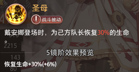 戴安娜登场时,为己方队长恢复30%的生命。