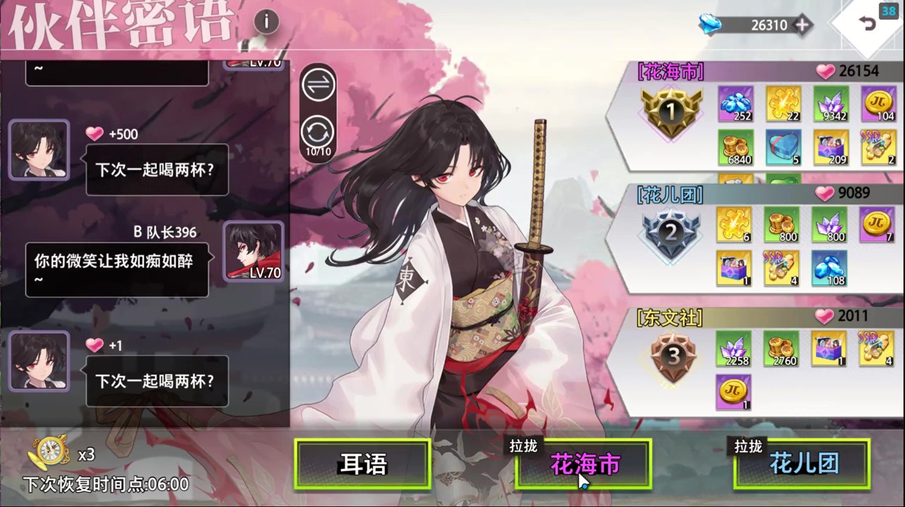 备战:结社成员可与不稳定的伙伴互动,积攒伙伴的好感与奖励,形成比赛的最终奖池;
