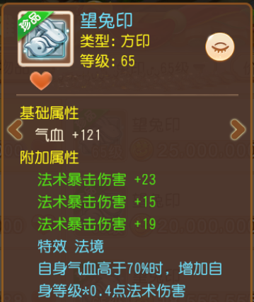 接下来为各位少侠带来的是一枚法系输出专用星印:特效“法境”可直截了当地提升面板法伤,3条法术暴击伤害的附加属性能大幅强化携带者的爆发能力。