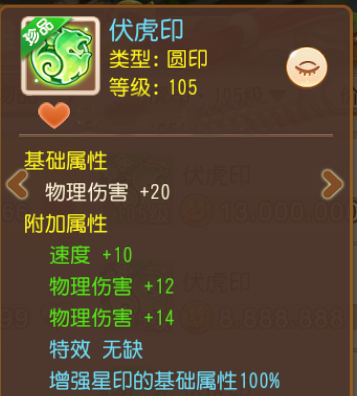 整个印无论是基础属性、附加属性还是特效,增加的都是物理系门派最需要的物伤、速度属性。