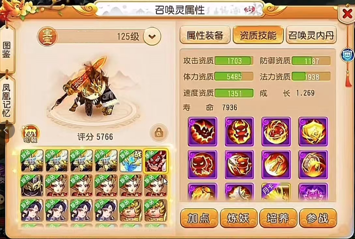 少侠们请看这只10技能虎啸山林虎力大仙!出众的资质成长在携带的技能面前还是略逊一筹了,别具一格的技能面板诠释“有生存就有输出”!