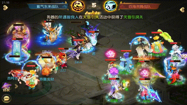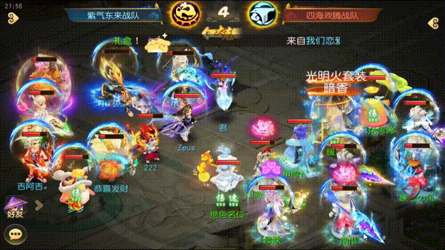 第4回合,四海欢腾战队地府补出光明火,对方普陀虽触发神佑武器,但被大唐翩鸿一击击杀倒地。力劈羽云仙子再次发力,7699暴击秒杀对战方魔王!