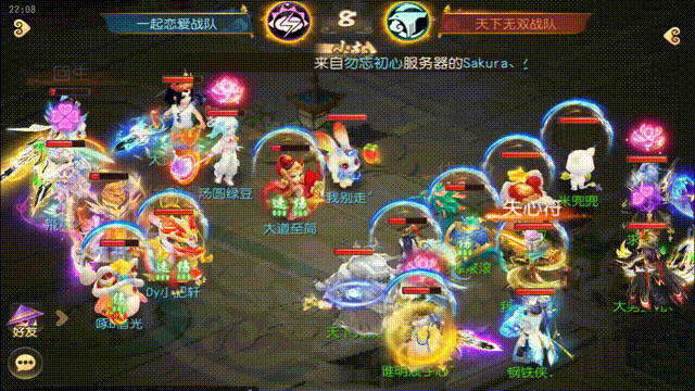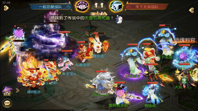 第8回合,天下无双战队地府强换光明火,触发遗志状态,击杀方寸后触发法术连击,配合羽云仙子出手带走狮驼!