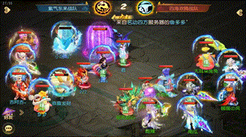 第10回合,天下无双战队蝶斓触发“灵慧”状态暴击3300,配合光明火及水无成功击倒满血普陀!