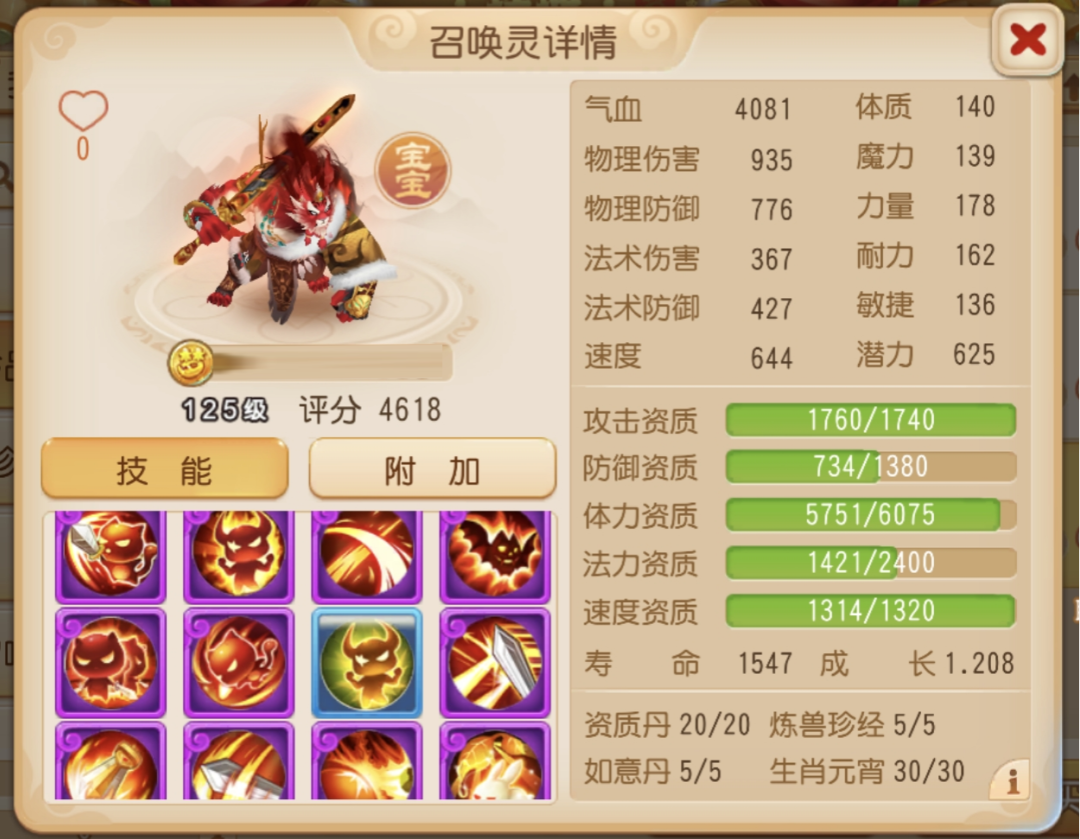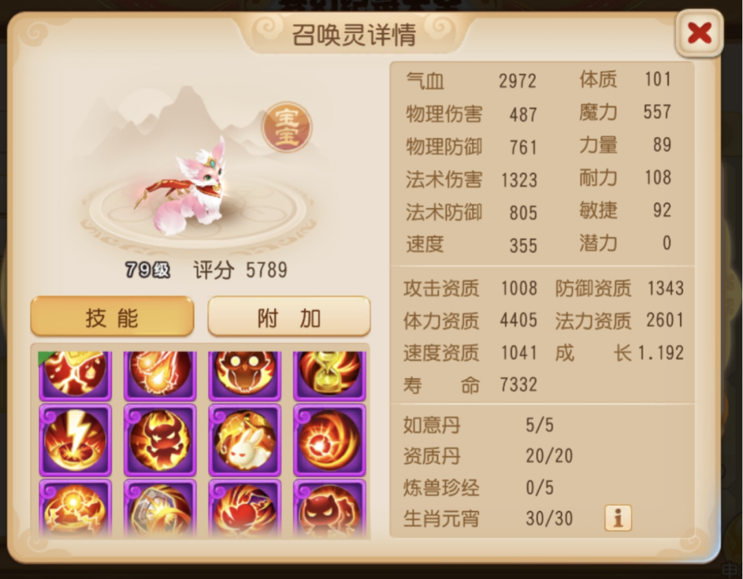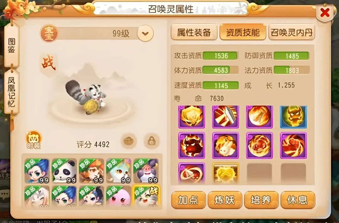 高达12个的技能格子数,配置感知、幸运、驱鬼等功能性魔兽要诀不在话下,足以应对各类战斗情景;突破极限的攻击资质和饱满的体速资质堪称六边形战士,不仅能打能扛、还能抢占先机优先出手。再搭配上侠客风范十足的“逍遥浪客”,定是赛场上一道靓丽又强劲的风景呢~