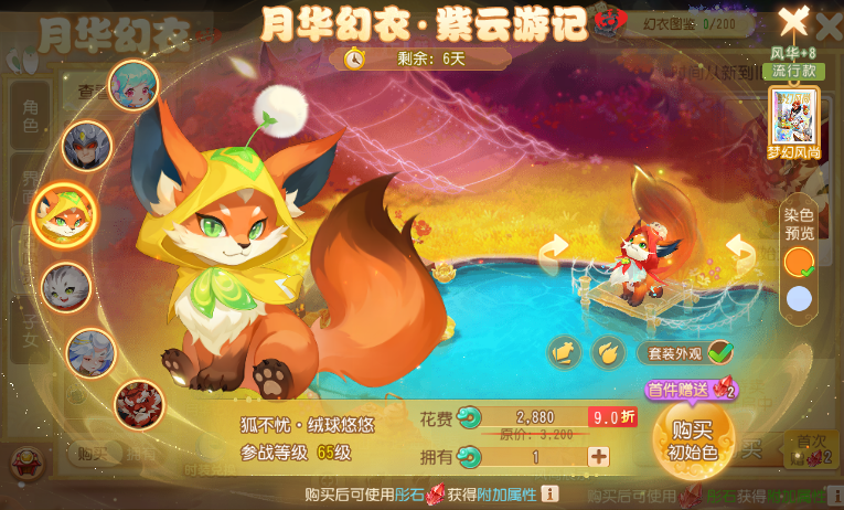 狐不忧的月华幻衣名为“绒球悠悠”,使用后会为其佩戴上一顶小帽子,毛茸茸、软乎乎,三界最可爱的宝宝定有它一席之地。