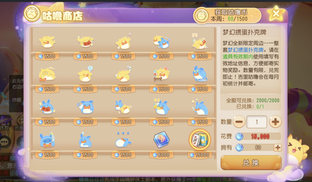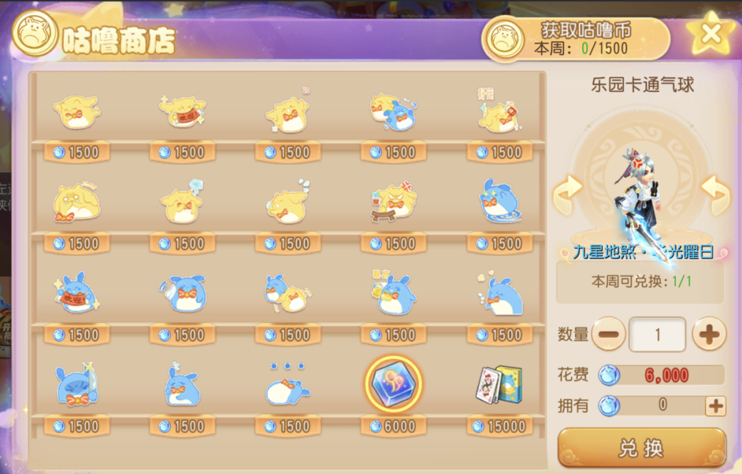 玩家结算对局获得咕噜币后可以在商店兑换表情/称谓特效/实物周边奖励。