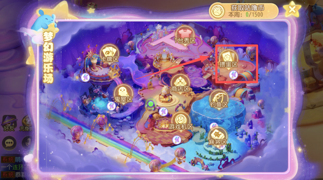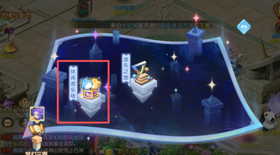 少侠们可以打开地图,点击神秘外域再点击休闲游乐场: