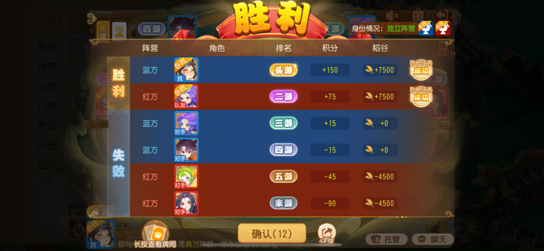 每人获得队伍积分,并根据队伍积分情况变化稻谷。