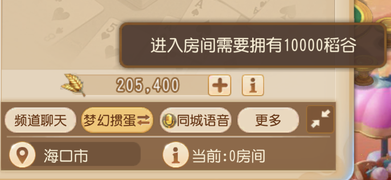 进入房间需要10000稻谷,稻谷少于10000无法参与。