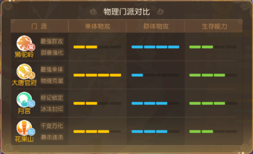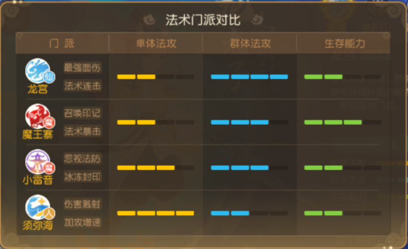狮驼岭与龙宫本身都属于非常强大的面伤输出门派,具有攻击单位多、打击范围广、单回合爆发上限高的特点。