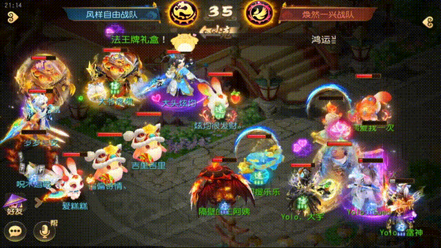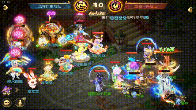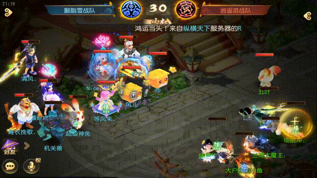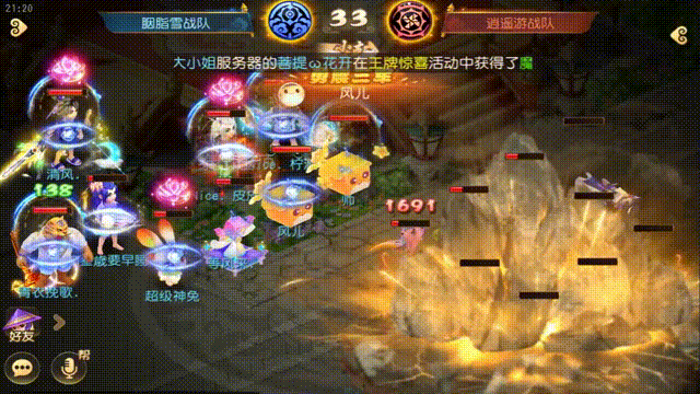 这场翻盘局中,实力、运气缺一不可,前期的高级神佑复生及方寸的两次关键回生让焕然一兴战队成功补出了召唤灵,在第30回合中,限制双输出出手大大缓解了己方血线及药耗压力,此后依靠驱鬼召唤灵及力劈吸血鬼成功击飞群法启明星后,辅助血线慢慢回复起来,魔王的“烈焰杖”更是在几次回合结束时触发,起到了非常不错的效果!这样一场堪称教科书级别的翻盘局,各位少侠是否为之折服呢~