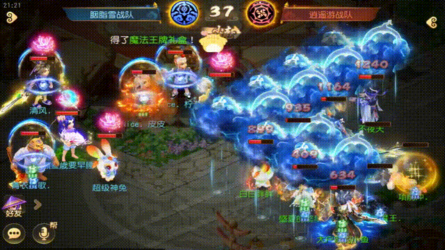 第37回合,观战方盘丝含情脉脉成功限制住对战方物理,己方普陀“洗其髓”保护己方狮驼岭出手,狮驼岭鹰击双暴击击杀方寸及普陀,配合魔王飞砂走石,成功完成翻盘!