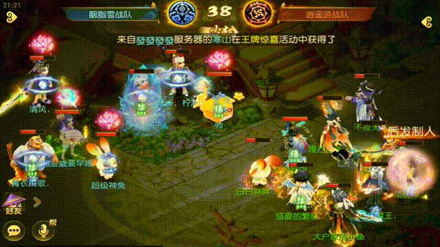 第38回合,大唐选择“后发制人”,对战方也是跳过大唐选择物攻魔王,在本回合,方寸的“死亡禁锢”效果消失,龟速复活方寸,起身使用“虚幻咒”。