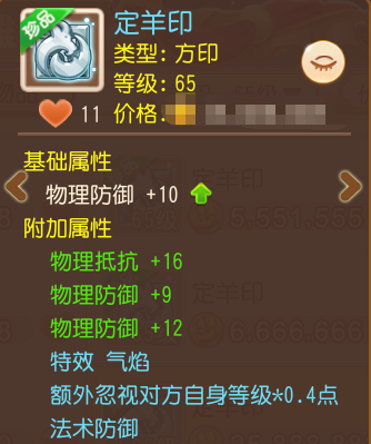 附加属性:物理防御+11