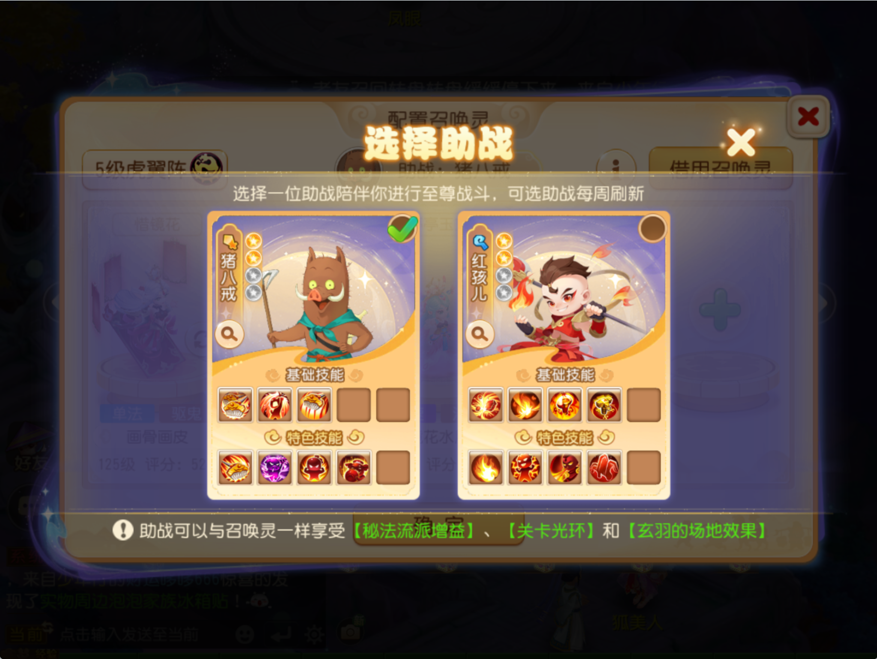 助战和召唤灵一样,也可以享受九转秘法流派、关卡光环和玄羽的场地效果加成,还将享受人物临时符的属性加成,少侠们记得打满符再出战哦~
