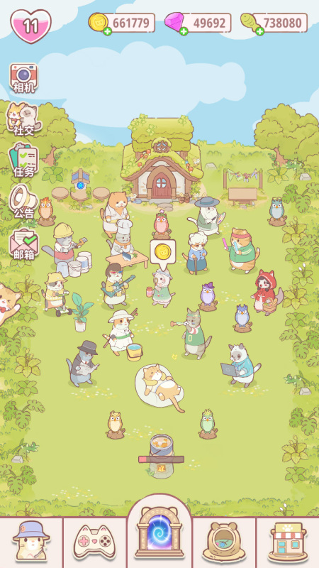 这里有一家神奇的喵喵旅馆,在这里你可以接待各种各样的猫猫,组成一支喵呜乐队,制作汤食给小猫升级,更多玩法等你探索!游戏玩法:通过获取金币与钻石,升级房屋或加速产品制造,收集更多的猫咪,并且为他们升级以探索猫咪之间更多的互动与玩法。游戏特点:画风清新可爱,治愈人心。猫咪养殖党狂喜,在手机上就可以云养猫!休闲时光的绝佳拍档,随时随地畅玩。喵呜乐队等你来玩!
