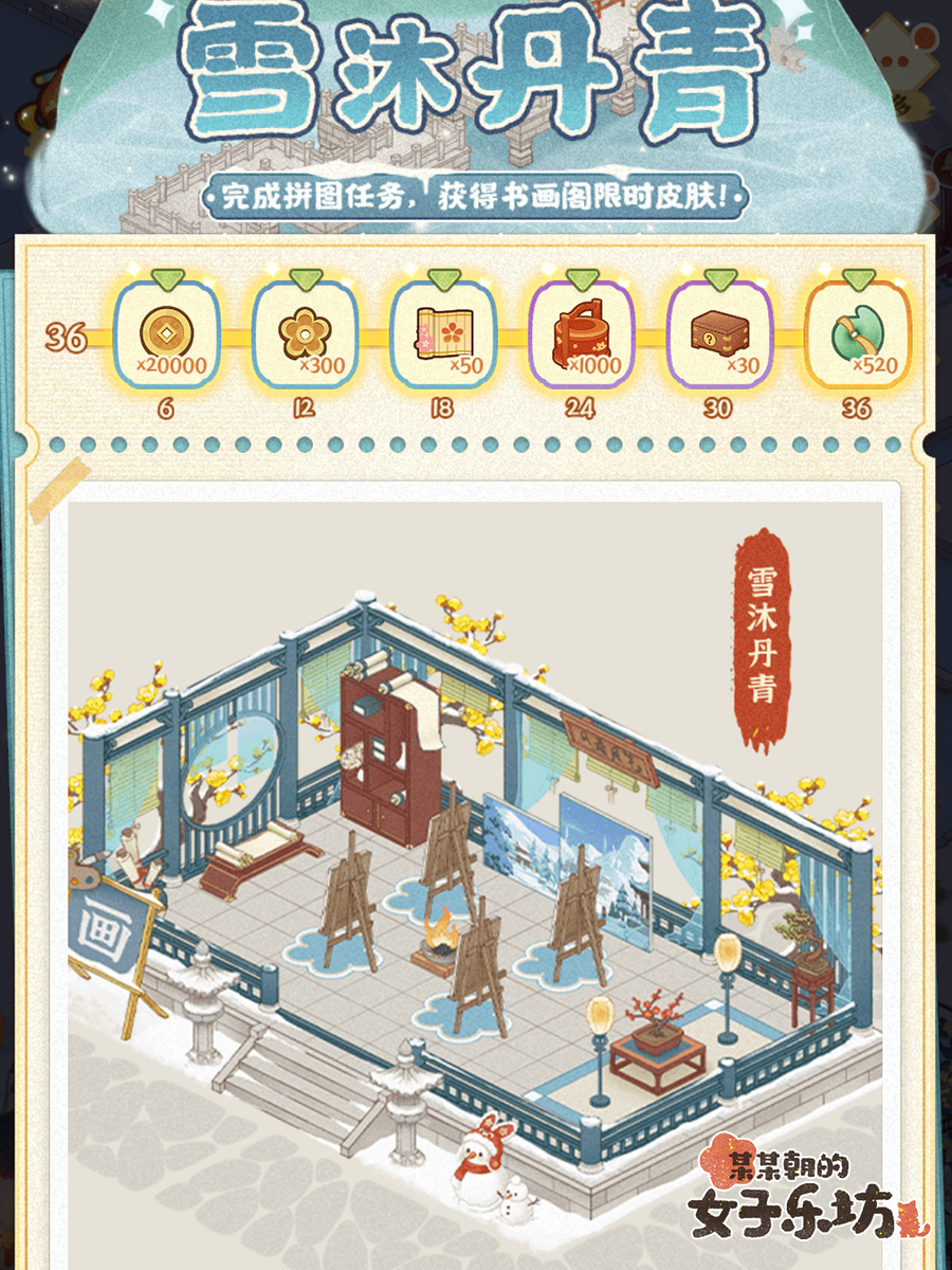 三、雪沐丹青,完成拼图即可获得书画阁限定皮肤