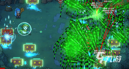 在有了足够的召唤物在场后需要去搭配一些辅助类型的法术,首先就是魔法屏障,因为这个召唤物只有主动攻击能力并不会跟随玩家,所以过程中玩家是比较危险的,而在有了这个屏障后就能降低一些风险,之后再搭配上无尽药瓶、伤害强化和过载等魔法就可以了,就能完成流派的搭配了。