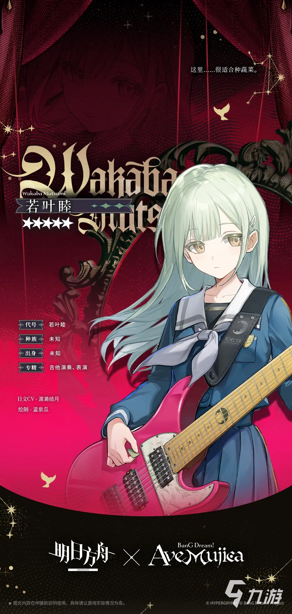 若叶睦是明日方舟和Ave Mujica的联动角色,这名全新的人气偶像干员,擅长吉他演奏和表演,外表非常清新,眼神有点忧郁,明日方舟若叶睦到底怎么样呢,这是很多朋友都在询问的问题,大家都想要提前了解下她的实力如何,接下来就详细给大家分析下该干员,看完后想必就能找到解答。