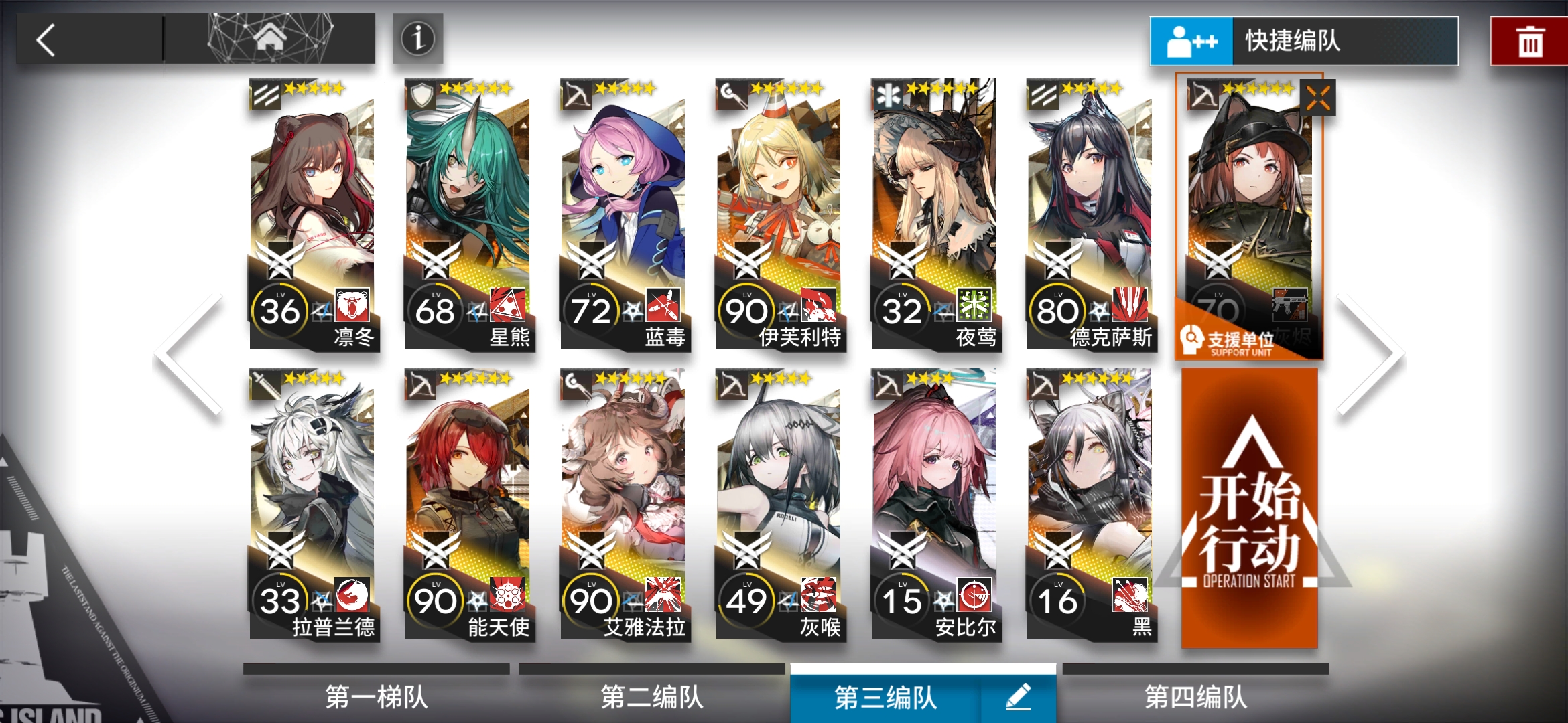 我方队伍∶(地面干员达到精一50级即可)可根据需要替换