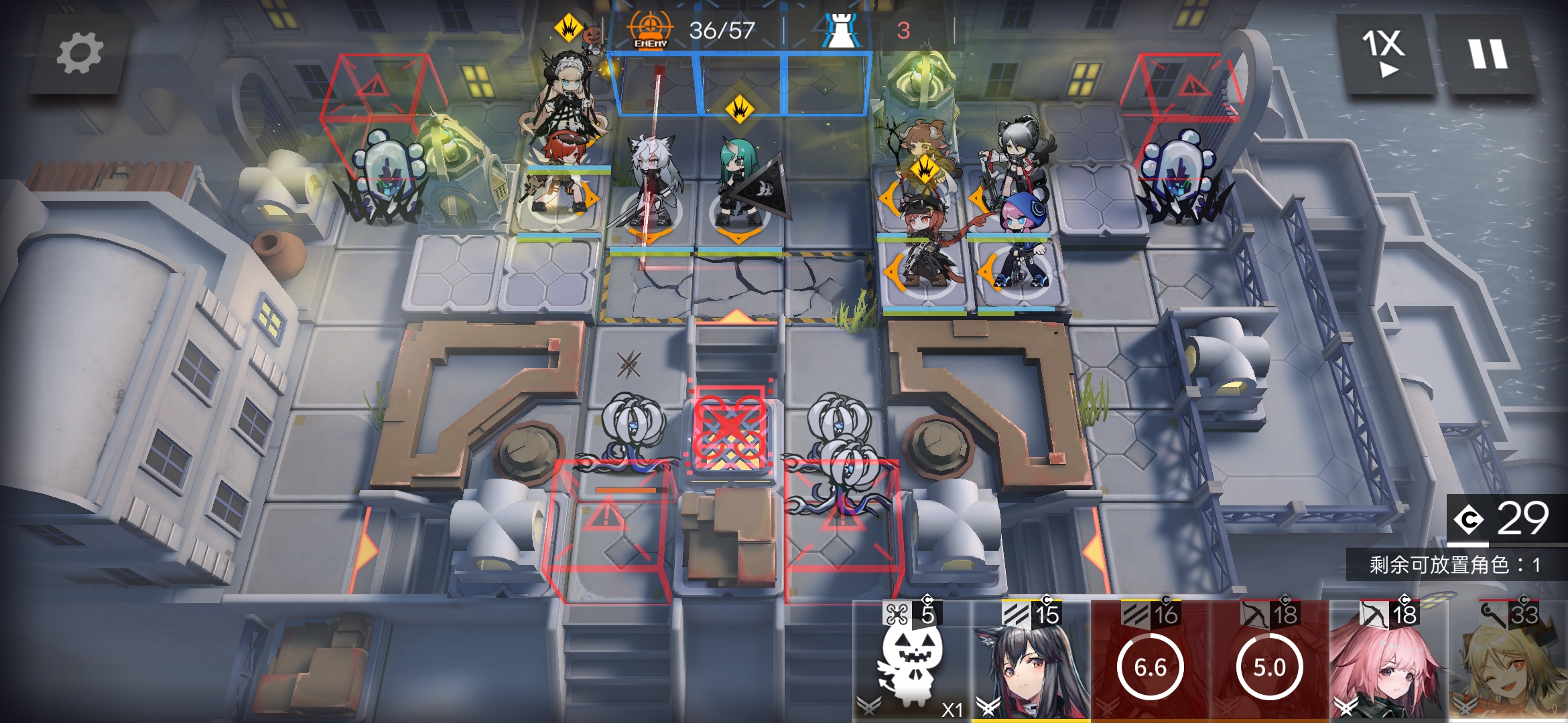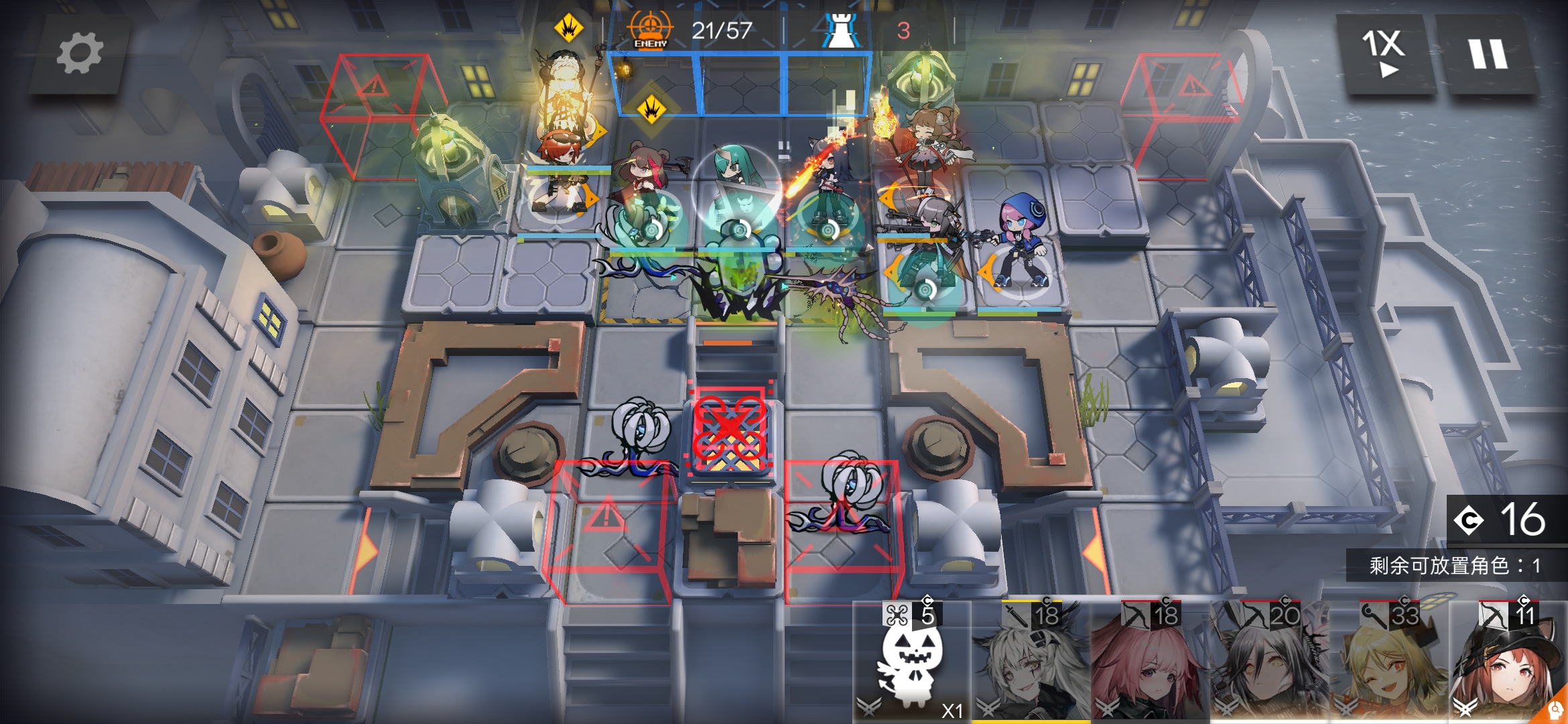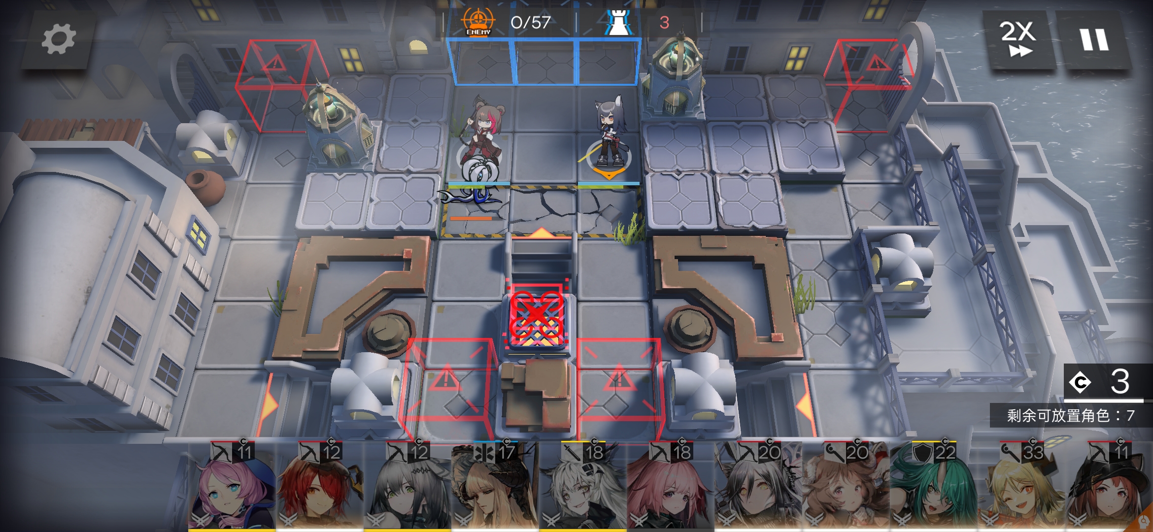 2、布置能天使和小羊在两侧高地上,方向向内,提供火力支援的同时,启动应急救治设施,维持所有干员的精神血条。