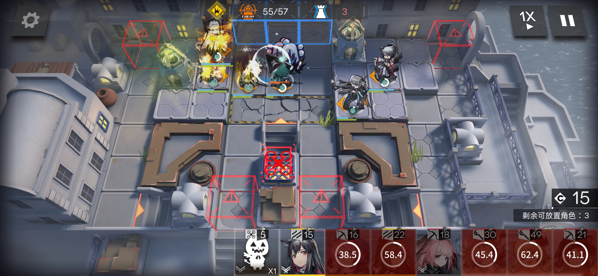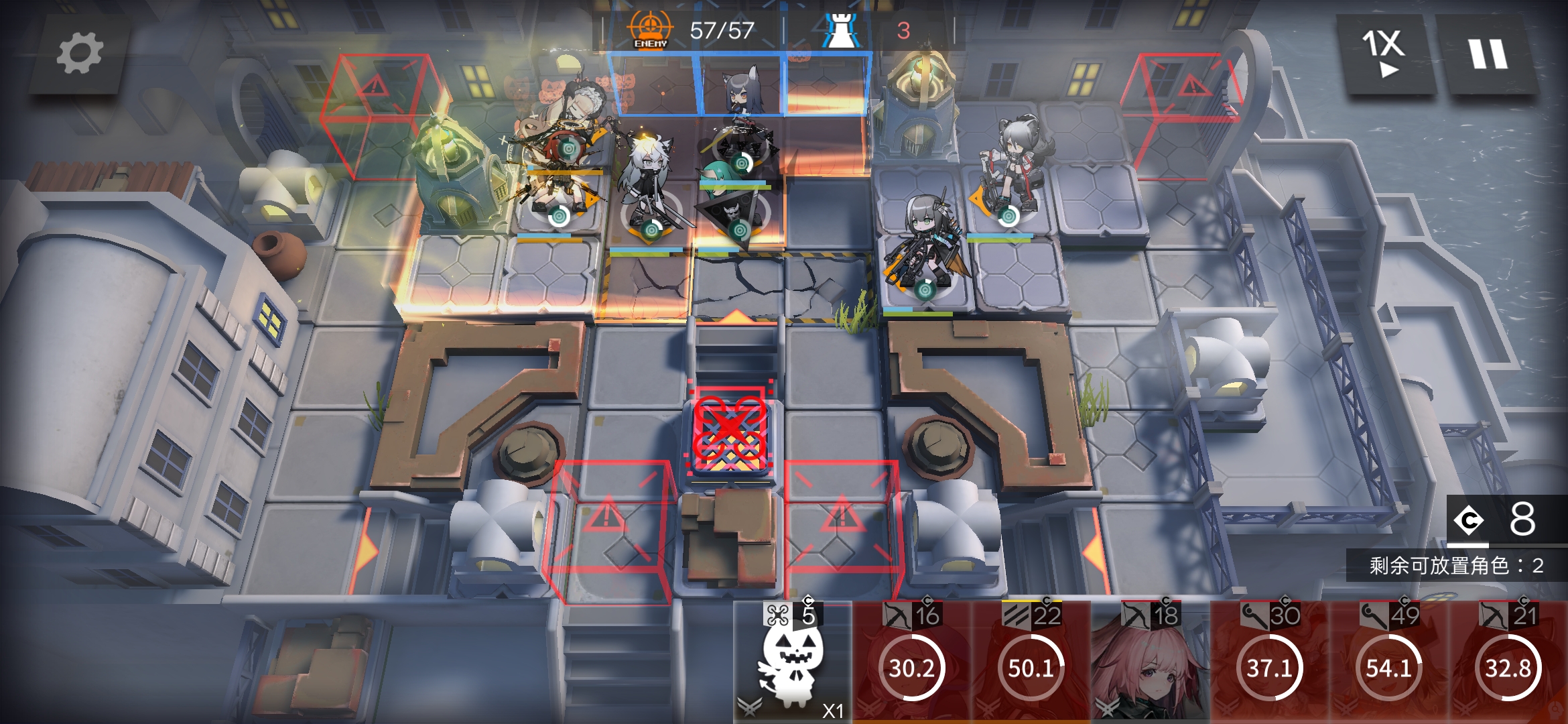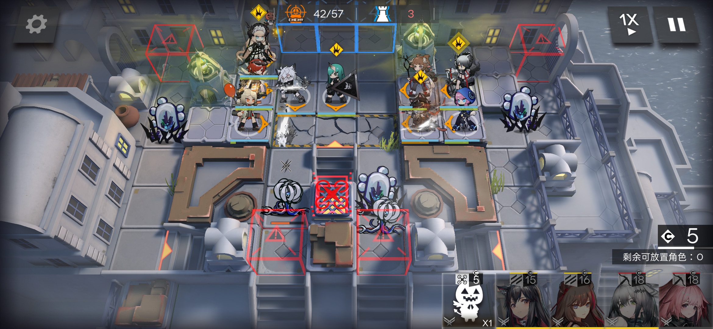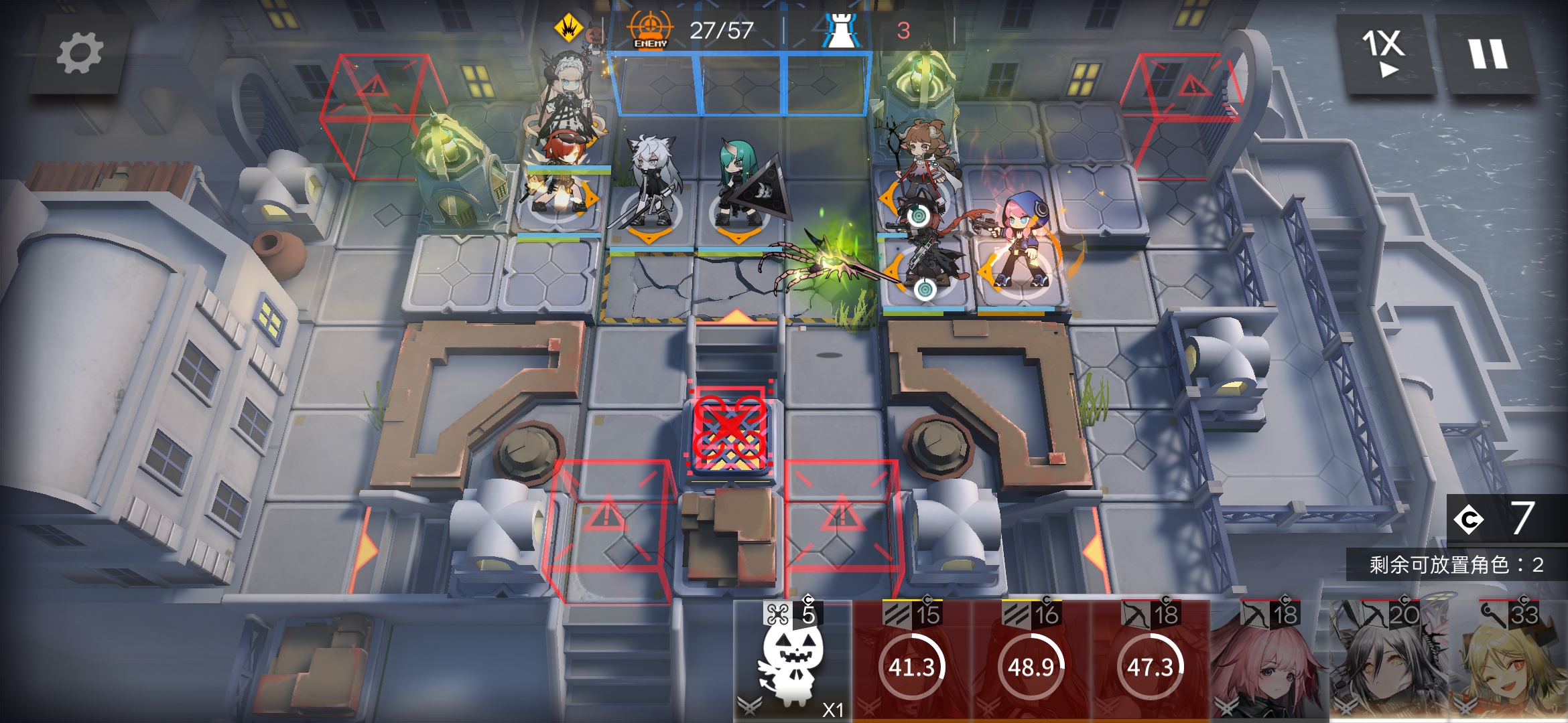 2、布置能天使和小羊在两侧高地上,方向向内,提供火力支援的同时,启动应急救治设施,维持所有干员的精神血条。