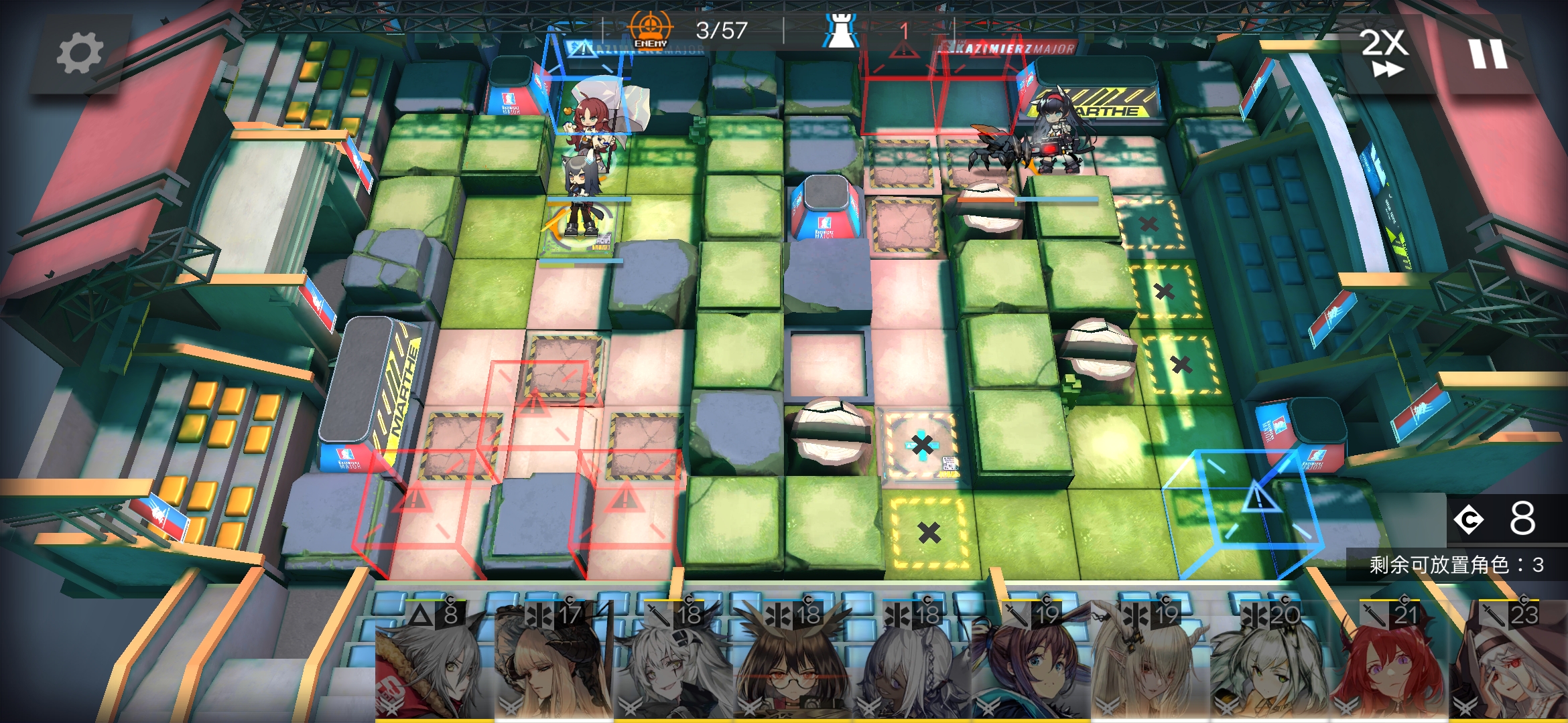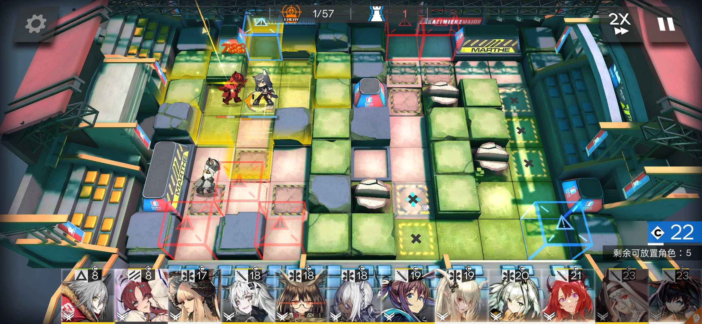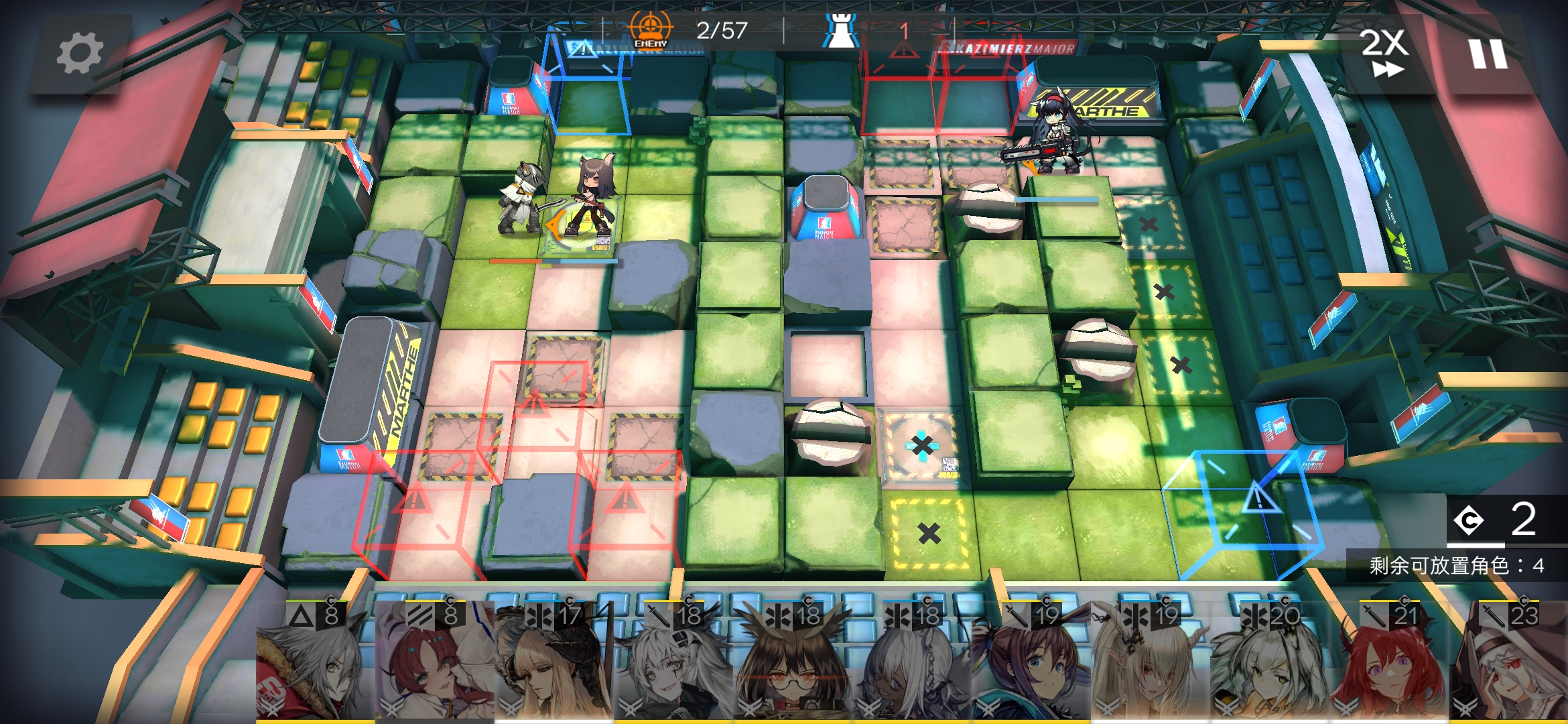 6、撤离左边所有人,用闪灵给斯卡蒂加血,布置桃子暴费,等42姐回复,布置42姐干掉凋零骑士,取得通关。