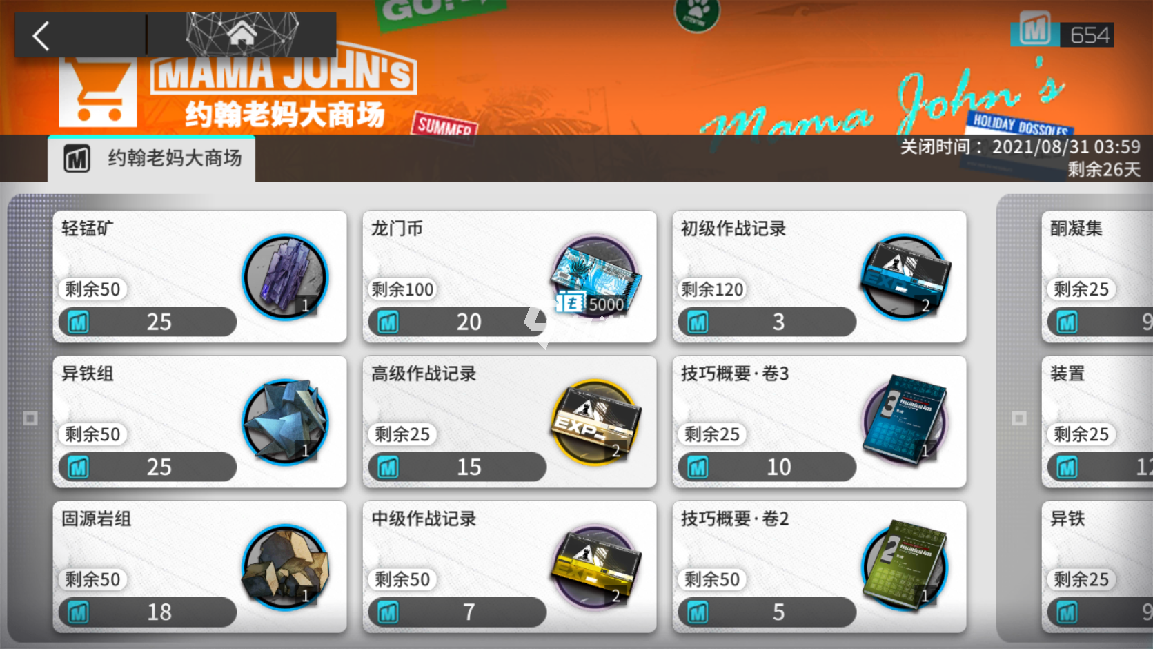 本次的多索雷斯假日活动商店名为:约翰老妈大商场。商店共分为三个板块,根据小编的计算可以得到,对于目前拥有月卡的玩家而言,在活动期间只要专注于刷活动副本是绝对可以顺利毕业本次活动,将道具商店搬空的。但是对于无氪玩家而言,本次的商店还是需要有所取舍才能够将理智最大化。