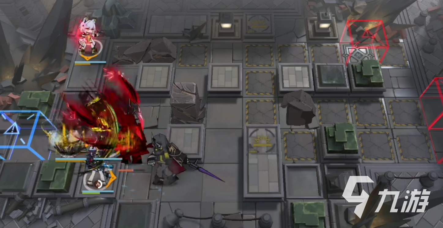 等42姐血量快见底以后迅速让雷娅上场,建议站位摆在敌人的出怪口,接着在42接身边加上水陈,同样是朝着上方攻击。接下来的时间就基本上是等各自的技能转好,敌方怪物大量聚集在一起的时候直接释放技能集火将精英双子怪秒杀就行。