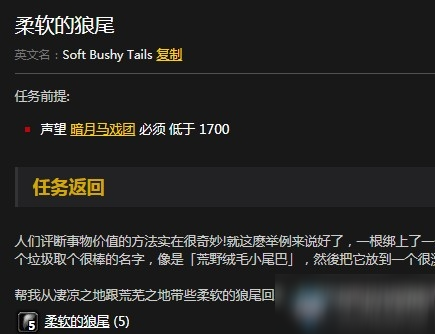 暗月马戏团是魔兽世界怀旧服每个月固定的活动,在每个月的第一个星期举办。在这个活动中,玩家通过完成活动任务能够获得许多特别的奖励。以下是柔软的狼尾任务攻略,对此感...[详情]