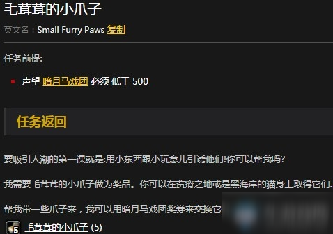 暗月马戏团是魔兽世界怀旧服每个月固定的活动,在每个月的第一个星期举办。在这个活动中,玩家通过完成活动任务能够获得许多特别的奖励。以下是毛茸茸的小爪子任务攻略,对...[详情]