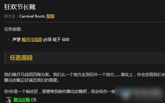 暗月马戏团是魔兽世界怀旧服每个月固定的活动,在每个月的第一个星期举办。在这个活动中,玩家通过完成活动任务能够获得许多特别的奖励。以下是狂欢节长靴任务攻略,对此感...[详情]