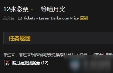 暗月马戏团是魔兽世界怀旧服每个月固定的活动,在每个月的第一个星期举办。在这个活动中,玩家通过完成活动任务能够获得许多特别的奖励。以下是12张彩票-二等暗月奖任务...[详情]