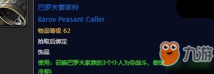 魔兽世界怀旧服巴罗夫管家铃怎么获得?巴罗夫管家铃获取途径是什么?还不清楚的小伙伴看过来,这里九游九游网小编为大家带来魔兽世界怀旧服巴罗夫管家铃获取攻略的详细介绍...[详情]