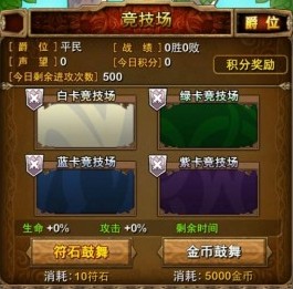 ·竞技场中可使用金币进行鼓舞,将提高本方卡牌一定血量或攻击;