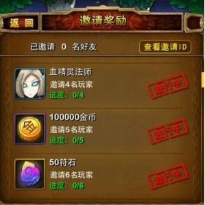 ·成功邀请一定数量的玩家,邀请者可以获得邀请奖励;除符石和金币外,最多可获得共24张4★血精灵法师;