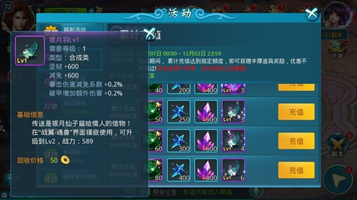 活动说明:活动期间, 累计充值达到指定额度,即可获赠丰厚道具奖励,优惠不容错过!充值金额不清零,活动结束之后重置;