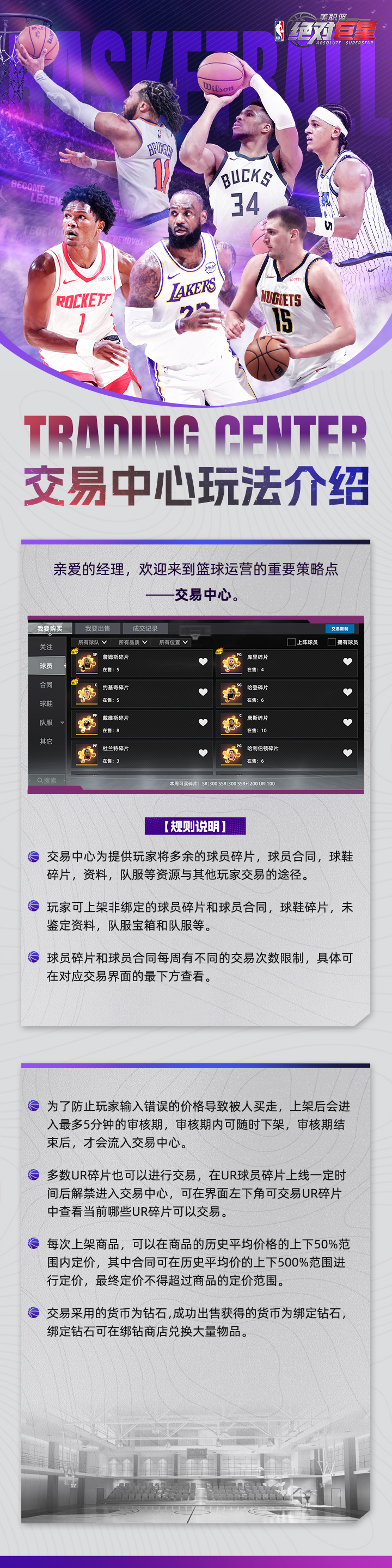 手机游戏> 美职篮绝对巨星> 游戏攻略> 综合篇> 玩法速览:交易中心玩法介绍