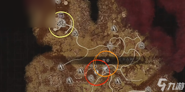 2、玩家可以从“橙色标记点”触发抵达,该位置也就是“露营”所在的位置。