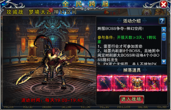 1、神幻空间活动为开服时间≥3天,每天19:00-19:45期间开启。