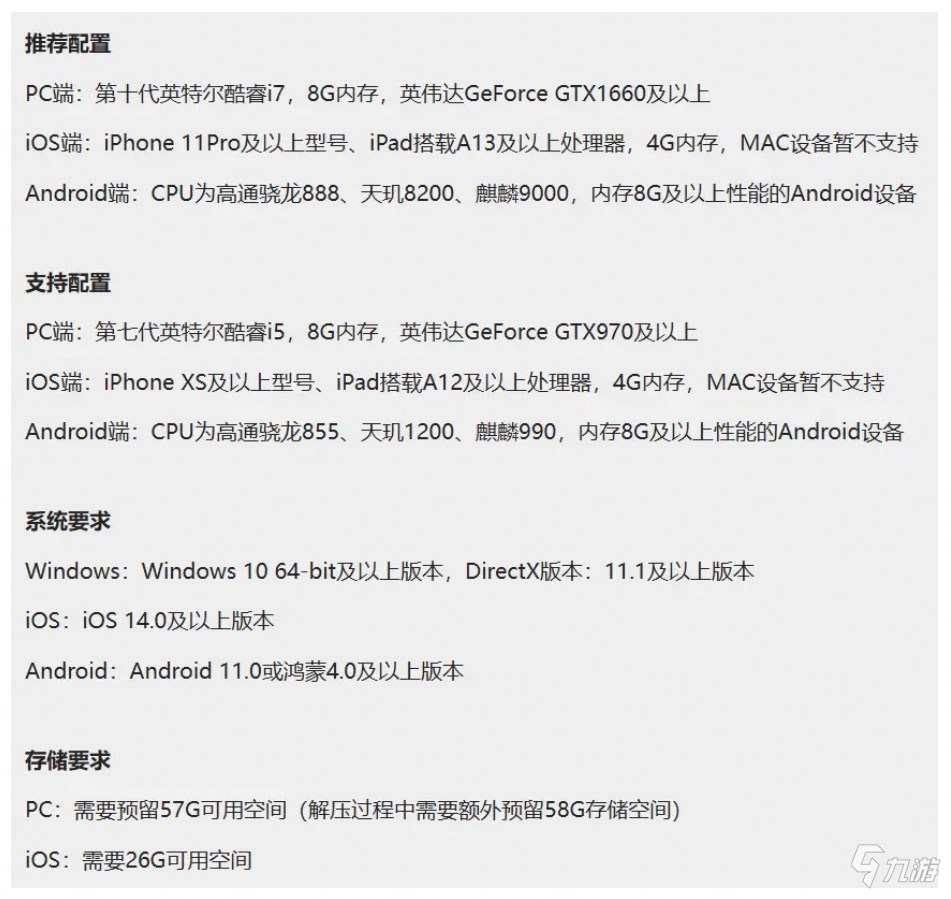 游戏配置是决定游戏体验的决定性因素,趁着游戏还没正式开服,先看看自己的机器配置是否能达标,如果达不到可能会在后期游玩时严重影响游戏体验度。下面就为大家详细分享下游戏的配置需求及安装下载注意事项。下图为游戏官方给出的配置需求: