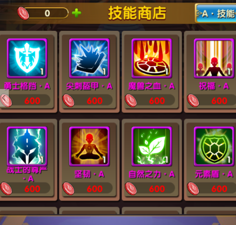 在《世界英雄》除了英雄自身携带的技能,玩家依旧可以给英雄选择技能,技能品质的划分,也分为B、A、S不同级别的技能,玩家在刚进入游戏时可以选择四个B级技能,之后可以加入公会做任务赢取公会贡献度,去技能商店购买技能,当然想一步登天可以直接声VIP4进入黑市用砖石购买