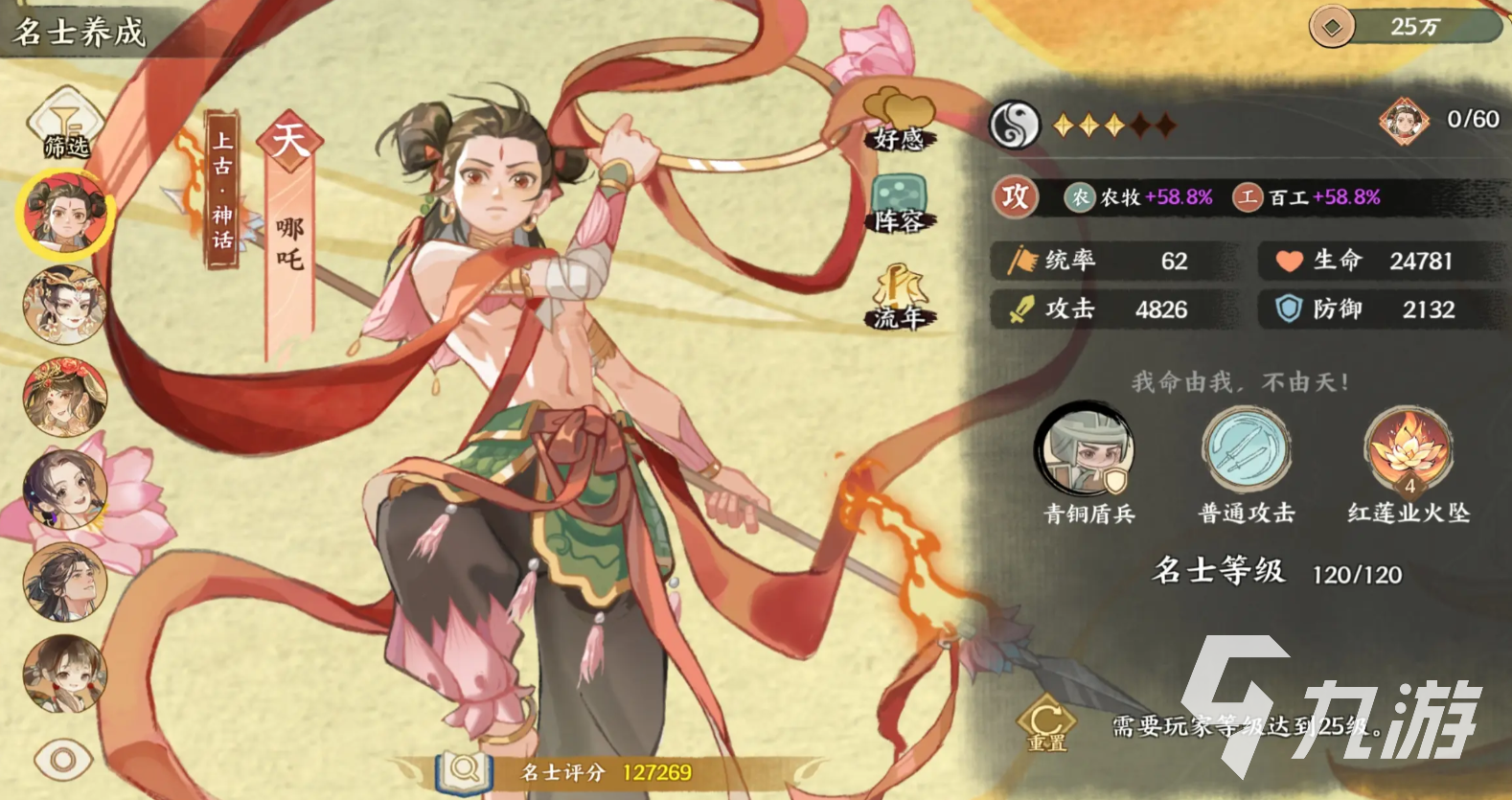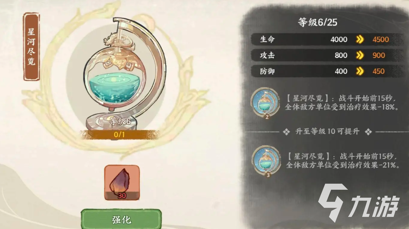 培养方面首先是经典的升级,升级记得优先拉满主力队伍的5位成员,在还没有解锁序学之前,也可以多去选择几位名士升到40级左右来提升物资的产量,名士在20级之前是可以免费重置的,所以也不需要太担心升错的问题,然后是命格,命格简单来说就是升星能提升基础属性和技能的强度,当我们抽取到重复名士后会获取用来升级命格的碎片,每一个名士的命格总共会有10个等级,越高消耗掉的碎片就会越多,同样建议先升主力,最后是天赋,这个会在我们等级到9的时候解锁,需要使用天衍卷,这个的上限会受到其自身等级的影响,也就是说角色的等级越多,我们能解锁出的天赋才会越多。