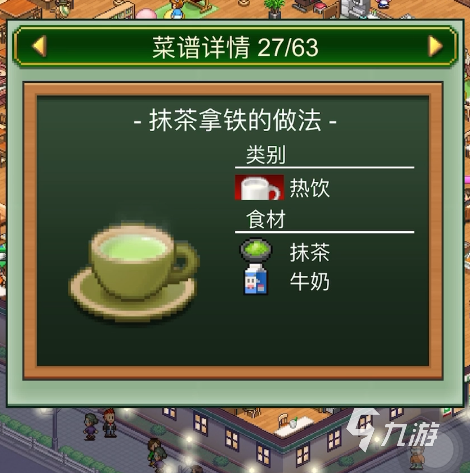 热饮也是中期之后比较热门的一种。前面会自动给热水和抹茶。接下来提到的第一个便是抹茶拿铁,这个是抹茶+牛奶。接下来是可可,此物是可可加牛奶粉。热奶昔是牛奶加上蛋黄,热姜汁汽水则是需要蜂蜜加上生姜还有热水便可以调和而成。