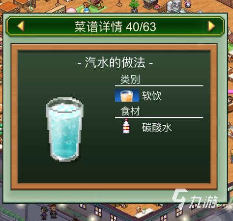 最后是软饮。一开始咱们可以拿到美味的水,第一个是冰抹茶拿铁,这个是需要抹茶+牛奶。果汁,是需要苹果+柠檬。汽水的话直接使用碳酸水便可以制作出来。接下来的几个汽水都是可以使用物品加碳酸水做出来,比如苹果汽水就是苹果+碳酸水。